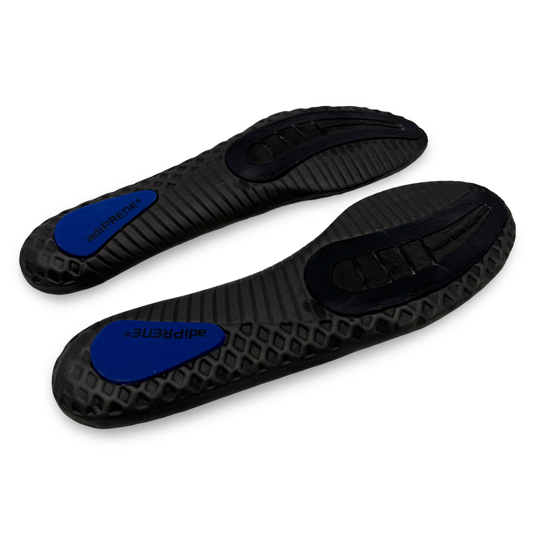 • Custom additional padding layer fitted on top of the insole boards for enhanced comfort and shock absorption.