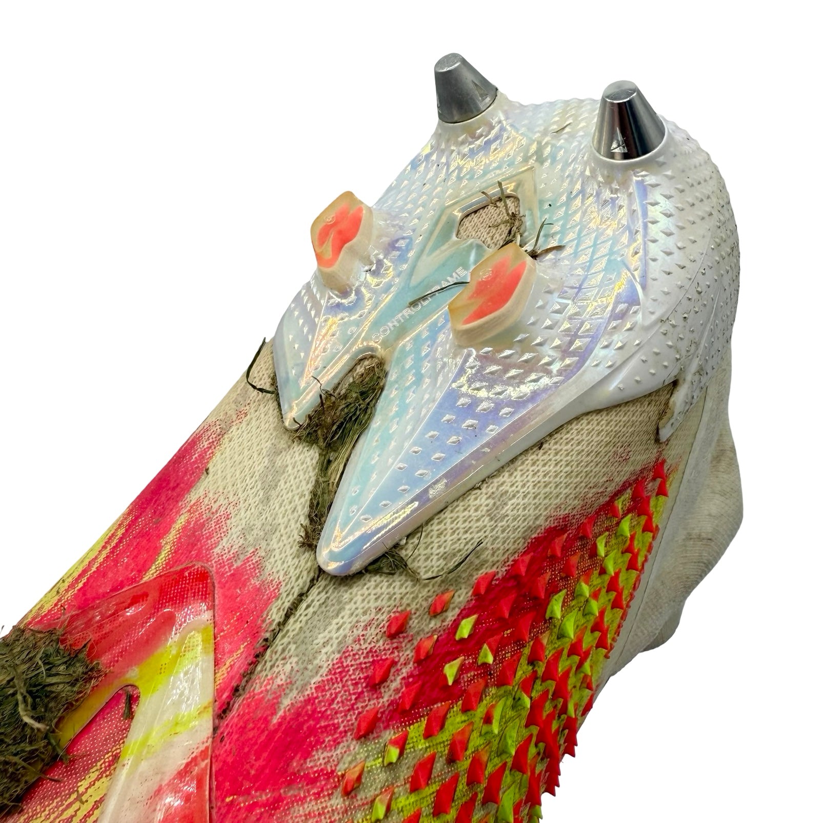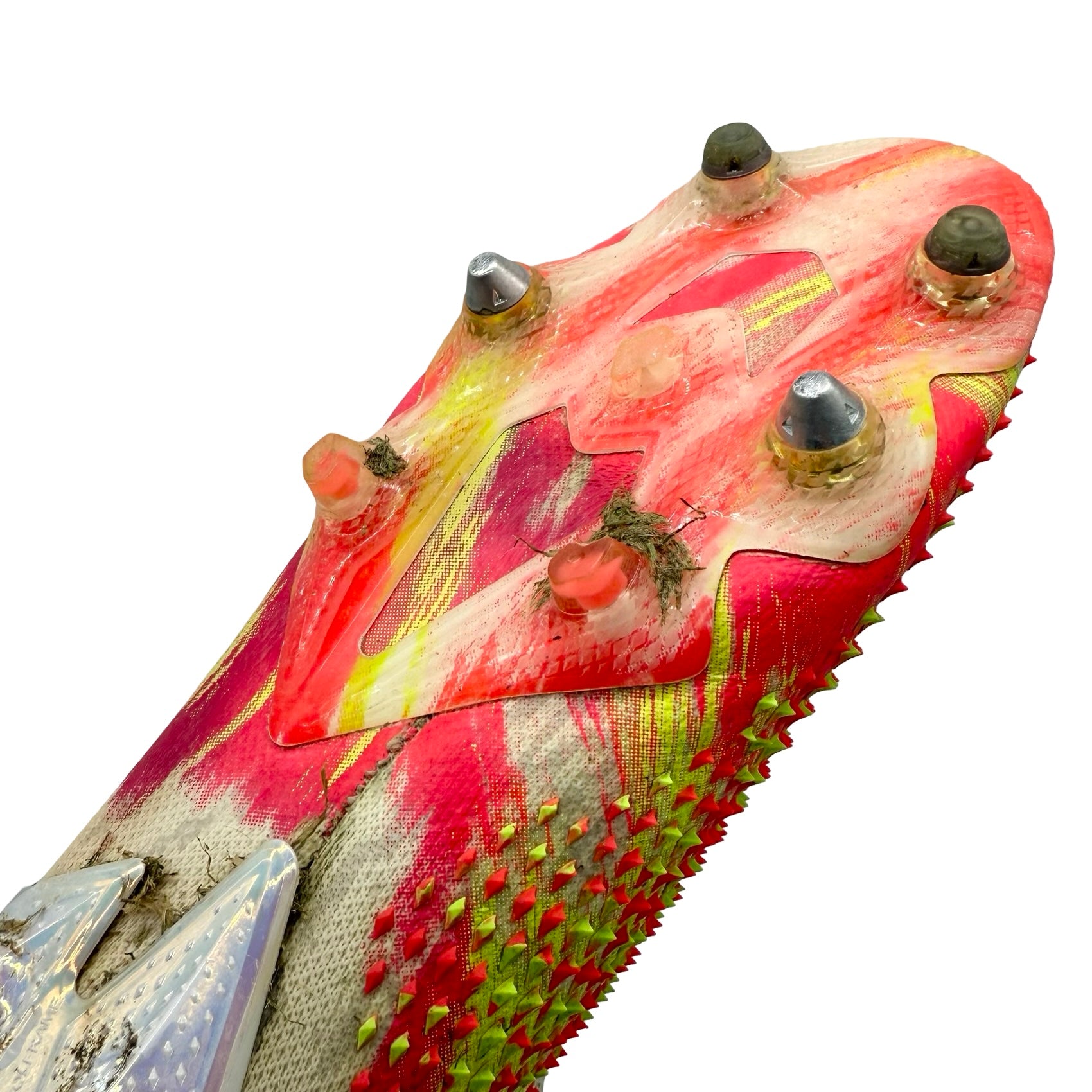 - Features bespoke Adidas Athlete Services modifications, including quarter sizing, custom padding, shaven stud, and reinforced insole boards.