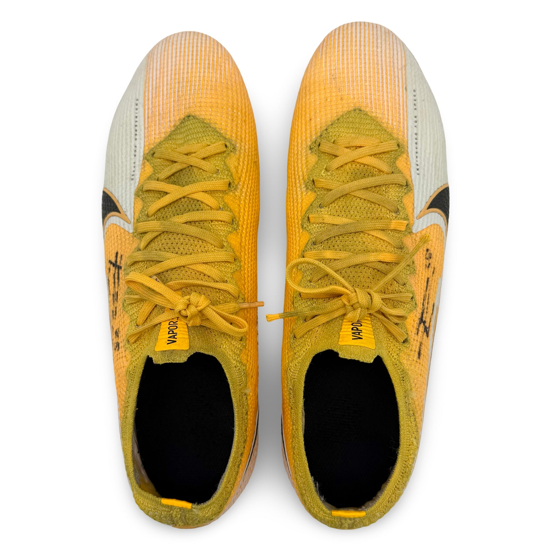Match-worn & player-issued boots are preserved in their authentic condition, including natural signs of professional use.