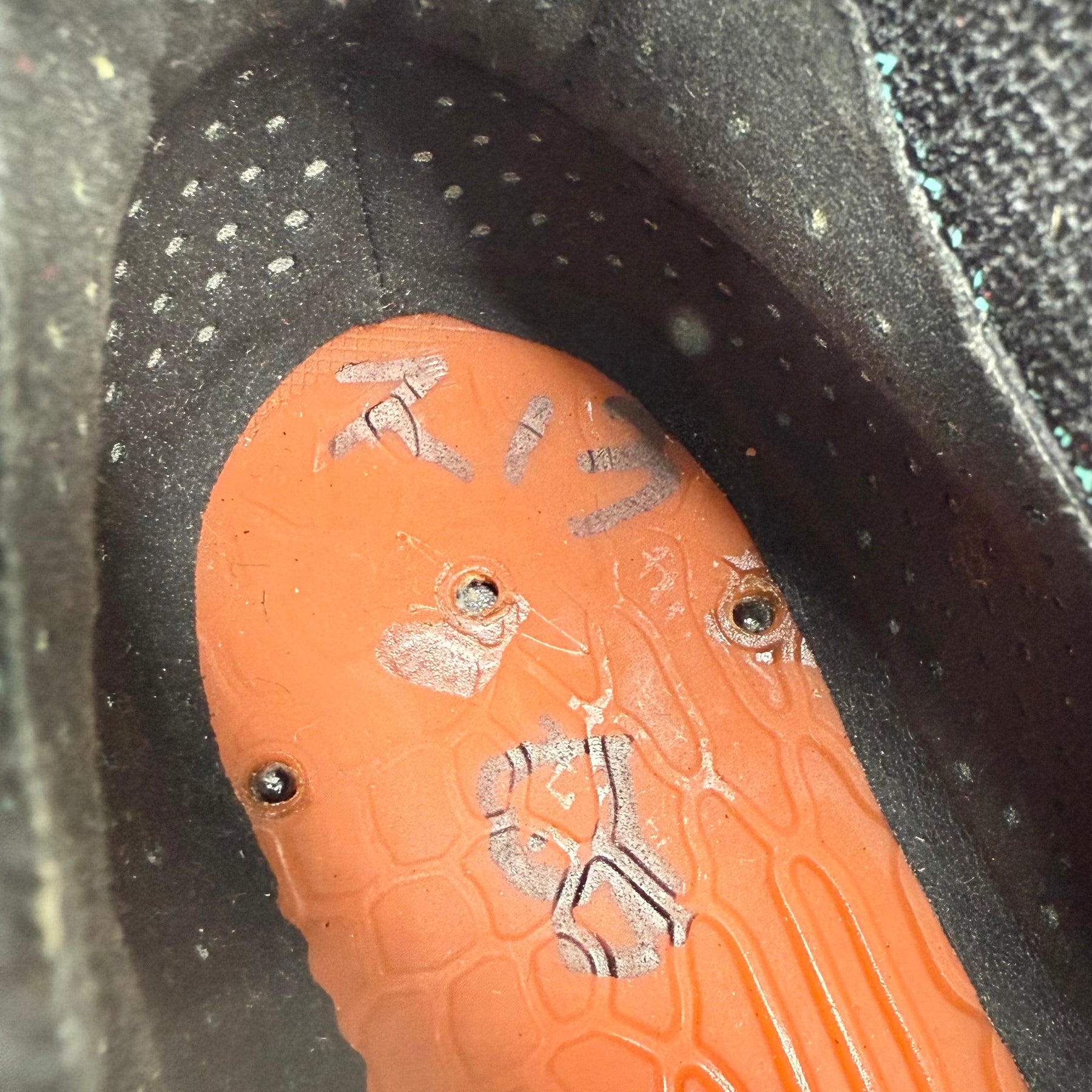 • Internally, each boot displays Ronaldo’s handwritten custom foot last/mould ID number in place of any size label, confirming its bespoke Montebelluna origin.