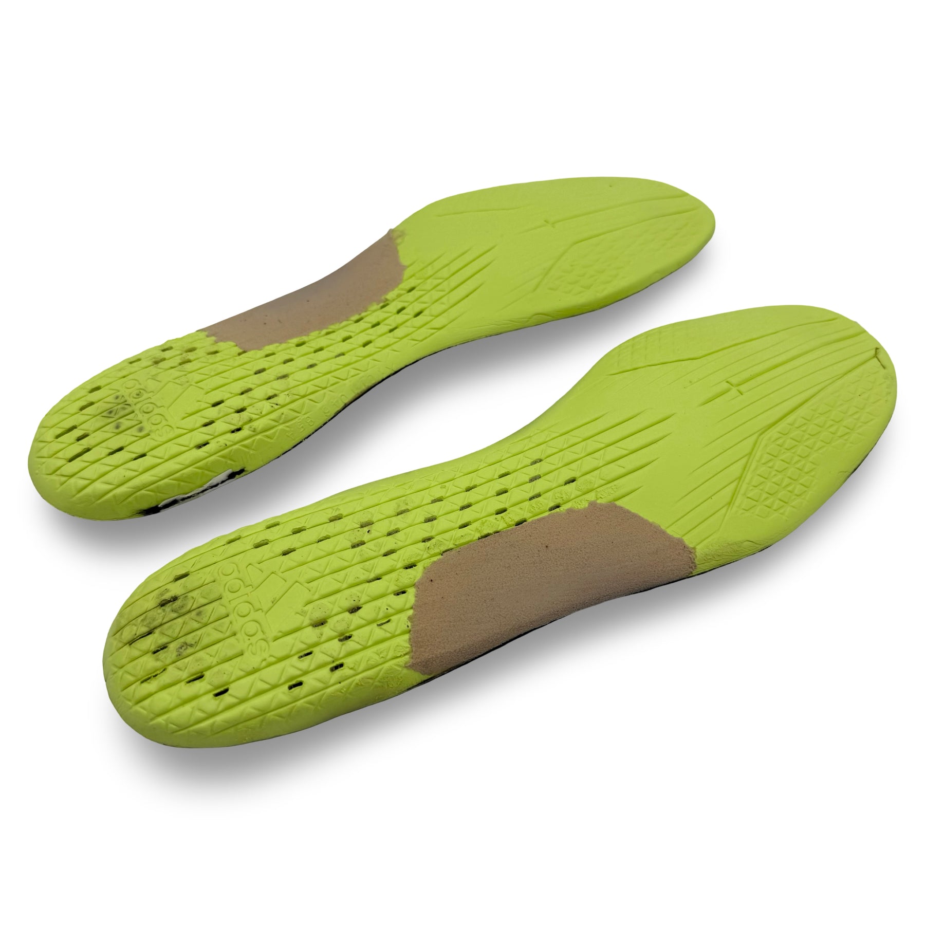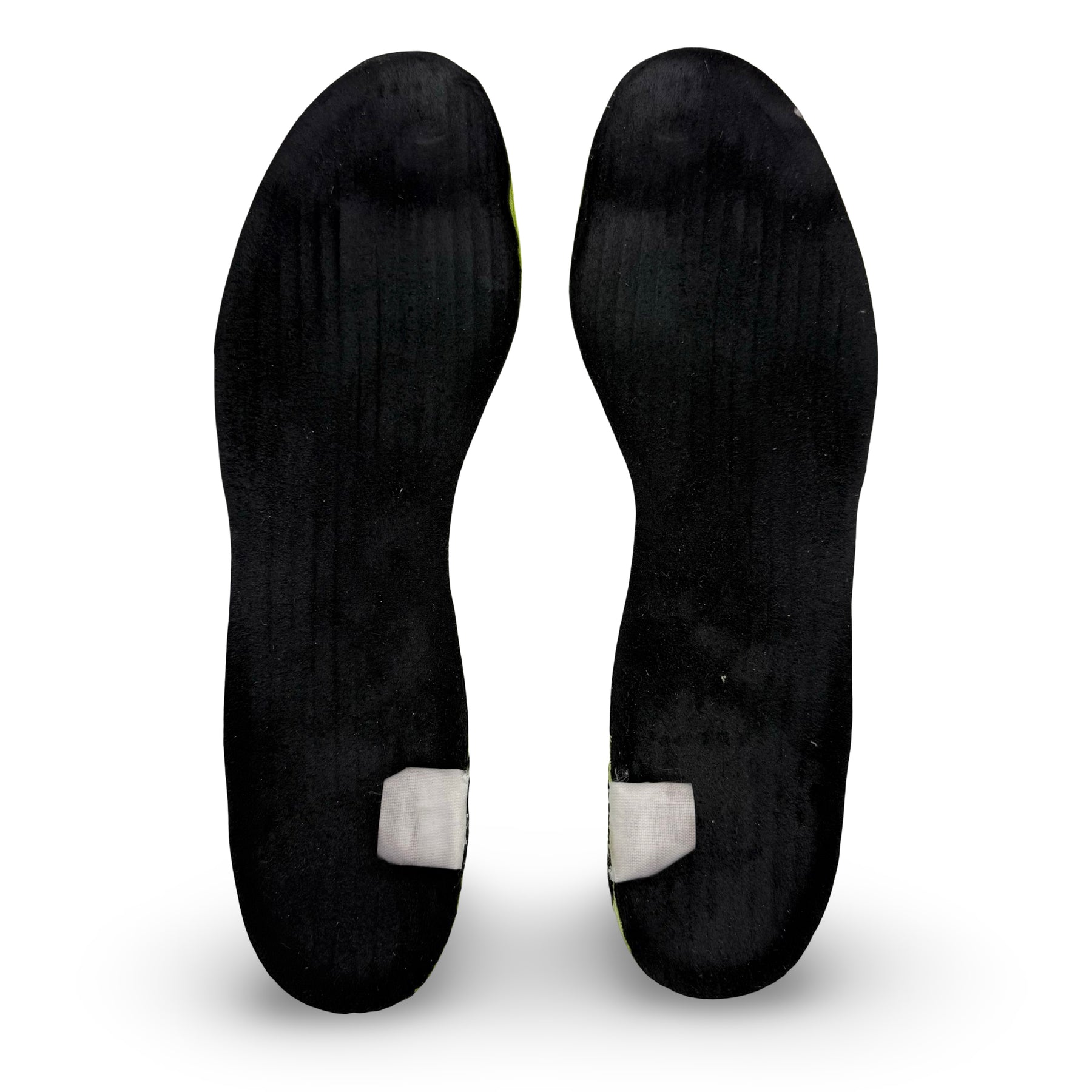 -  Este par también contiene las plantillas personalizadas utilizadas por el jugador, que cuentan con un forro de gamuza negra junto con una parte acolchada extra suave en el lado lateral del área del mediopié que también se ha incorporado en la parte inferior de cada plantilla.
