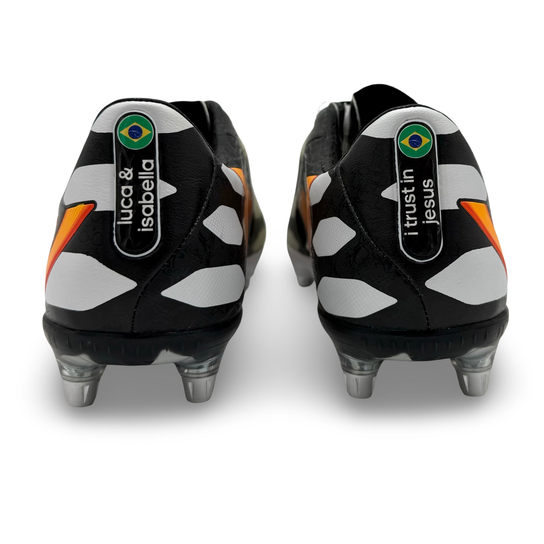 • Right boot: “I TRUST IN JESUS” + Brazil flag.