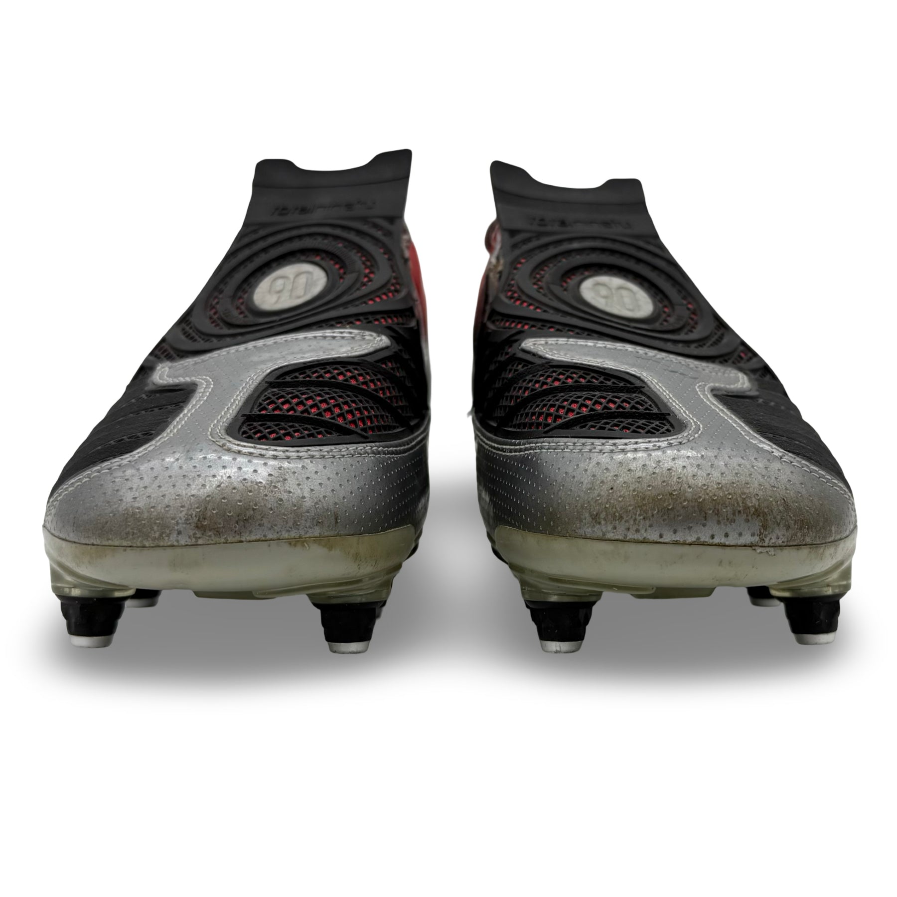 - このペアは、2005/06時代のナイキトータル90ズームエアモデルから取り出されたカスタムSGソールプレートを備えています。ねじ込み式SGスタッド自体は、アルミニウムの先端が付いた黒いプラスチック製のプレーヤー専用モデルです。