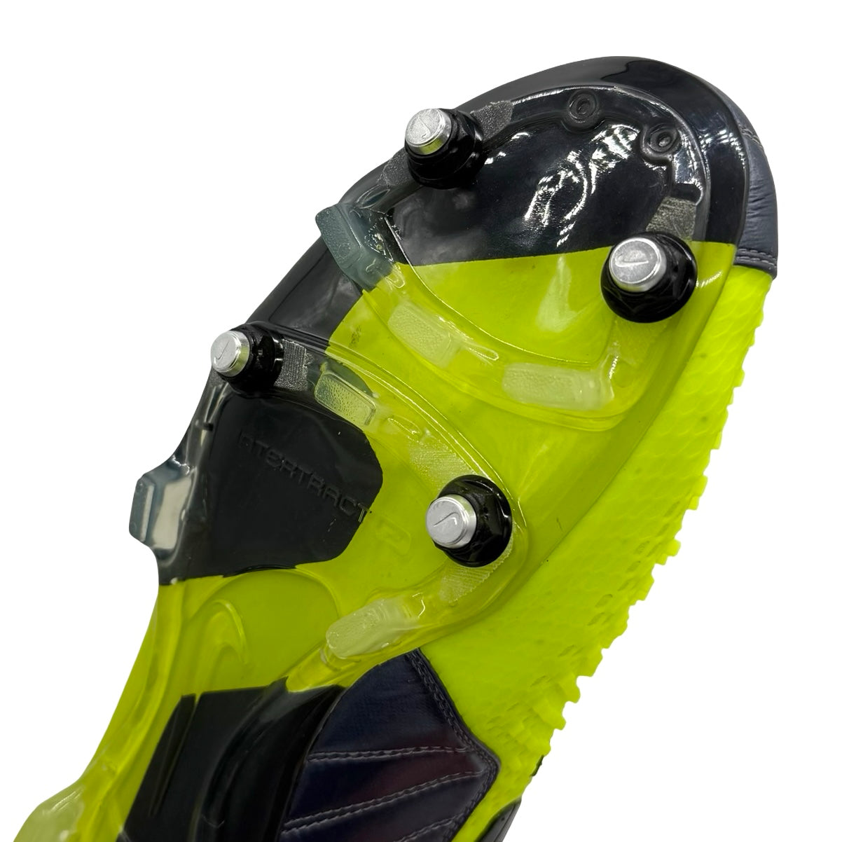 - Custom soleplate: Adapted Air Zoom Intertract FG soleplate taken from the 2002 Total 90 model, made transparent for disguise & converted by Nike’s Athlete Services division into a hybrid FG/SG mix.
